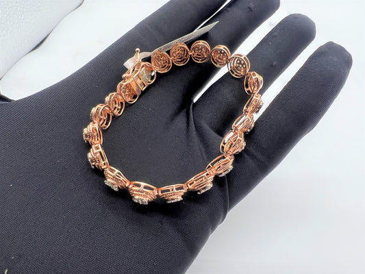 Gold Diamond Tennis Bracelet with Round Cluster Medallion Design