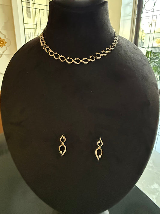 Lightweight Eternal Wave Gold & Diamond Necklace Set With Earrings
