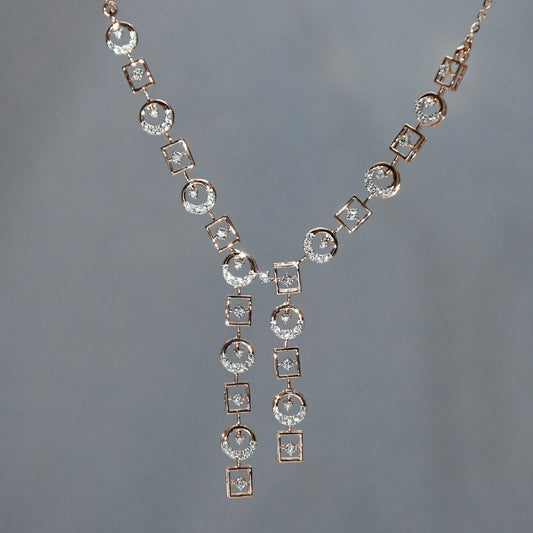 Geometry Link Diamond Lariat Necklace & Earrings Set