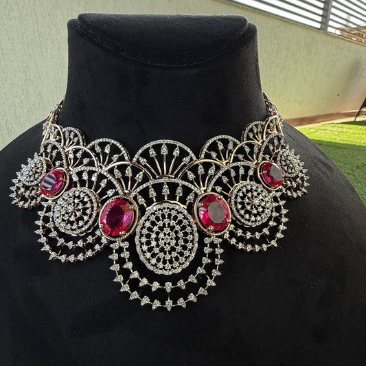 Opulent Cascade Color Stone & Diamond Wedding Choker Necklace Set