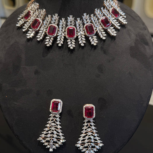 Regal Color Stone Leaf Wedding Diamond Choker Necklace Set