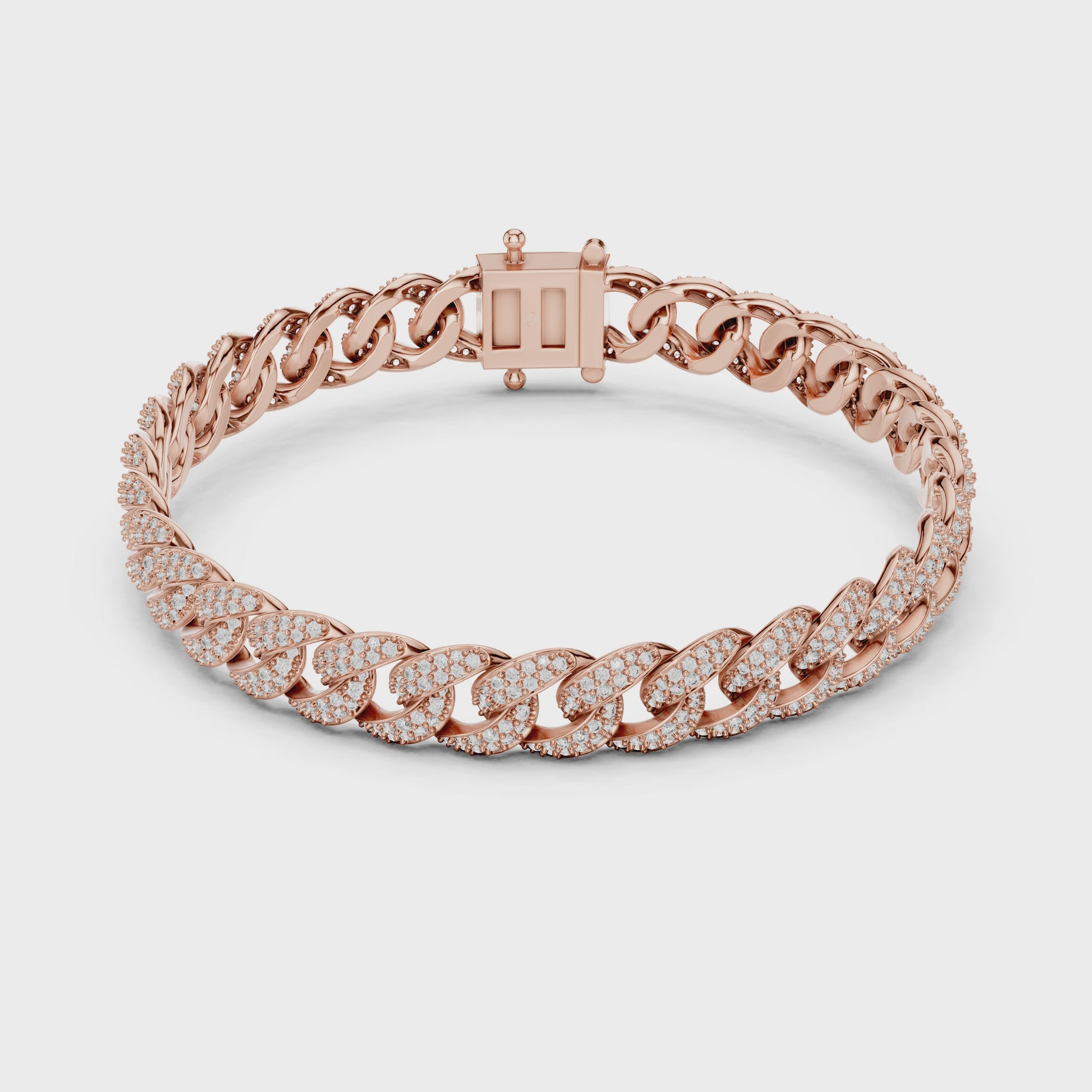 This rose gold bracelet doesn't whisper- it announces. The Cuban link has always been a power move, and covering it in diamonds just makes that power official. When you wear this diamond bracelet, you're channeling decades of cultural significance while adding your own chapter to the story. It's jewelry that understands influence, that knows the weight of symbols, that refuses to pretend luxury and street style can't coexist. They can. This proves it.